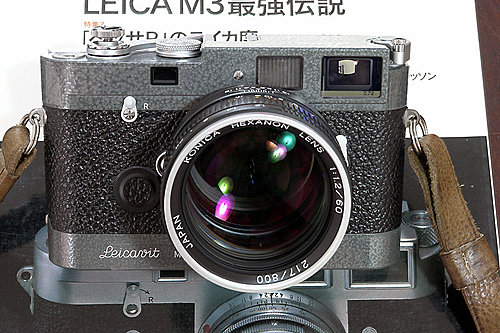 另外說說這款附在上面的鏡頭。它是Konica在收攤前除的紀念鏡,共發行800隻。Hexanon 60mm f1.2,如果喜歡攝影的人就會知道這是隻大眼睛的怪物。這兩者搭配起來相當美,也是我最愛的收藏之一。有機會的話,我再分享其他攝影的東西給大家。