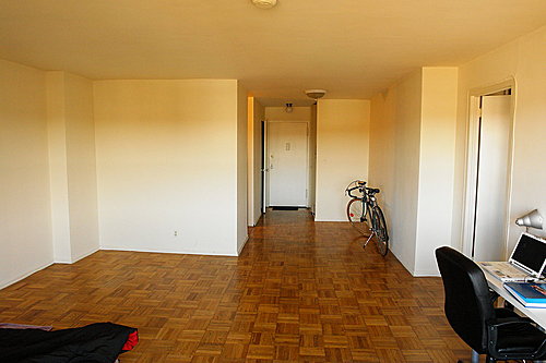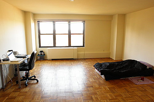 這是由窗戶的方向往內拍的東西,呵呵!很空曠吧! 沒辦法,東西買越多,到時候就很難搬走。不過這在我老媽的眼中,可能東西還是多了些
