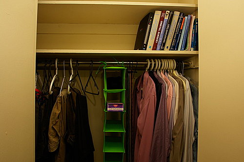 在書桌的旁邊有個門穿進去,就是更衣間跟浴室了,呵呵!櫃子很大可以放很多衣服,不過我沒用到那麼多,就把上層當作書櫃,很讚吧!